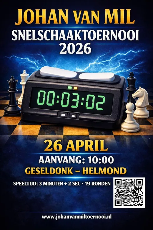 Honderdvijf schakers van alle soorten en speelsterktes namen vandaag in Helmond deel aan het Johan van Mil Snelschaaktoernooi, met als inzet de felbegeerde wisselbeker, de hoofdprijs van maar liefst € 400 en een prijzenfonds van in totaal ruim € 1500 en natuurlijk veel schaakplezier. Ook buiten was het goed toeven bij een lentetemperatuur van ruim 20 graden.