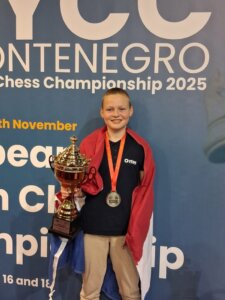 FM Bram ten Dam met zijn zilveren beker op het EK 2025